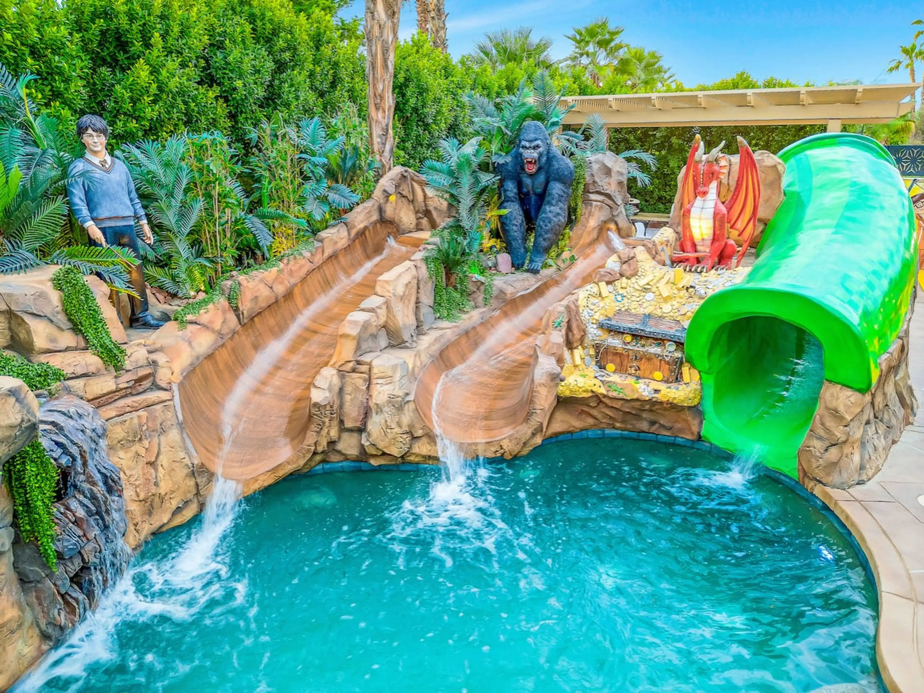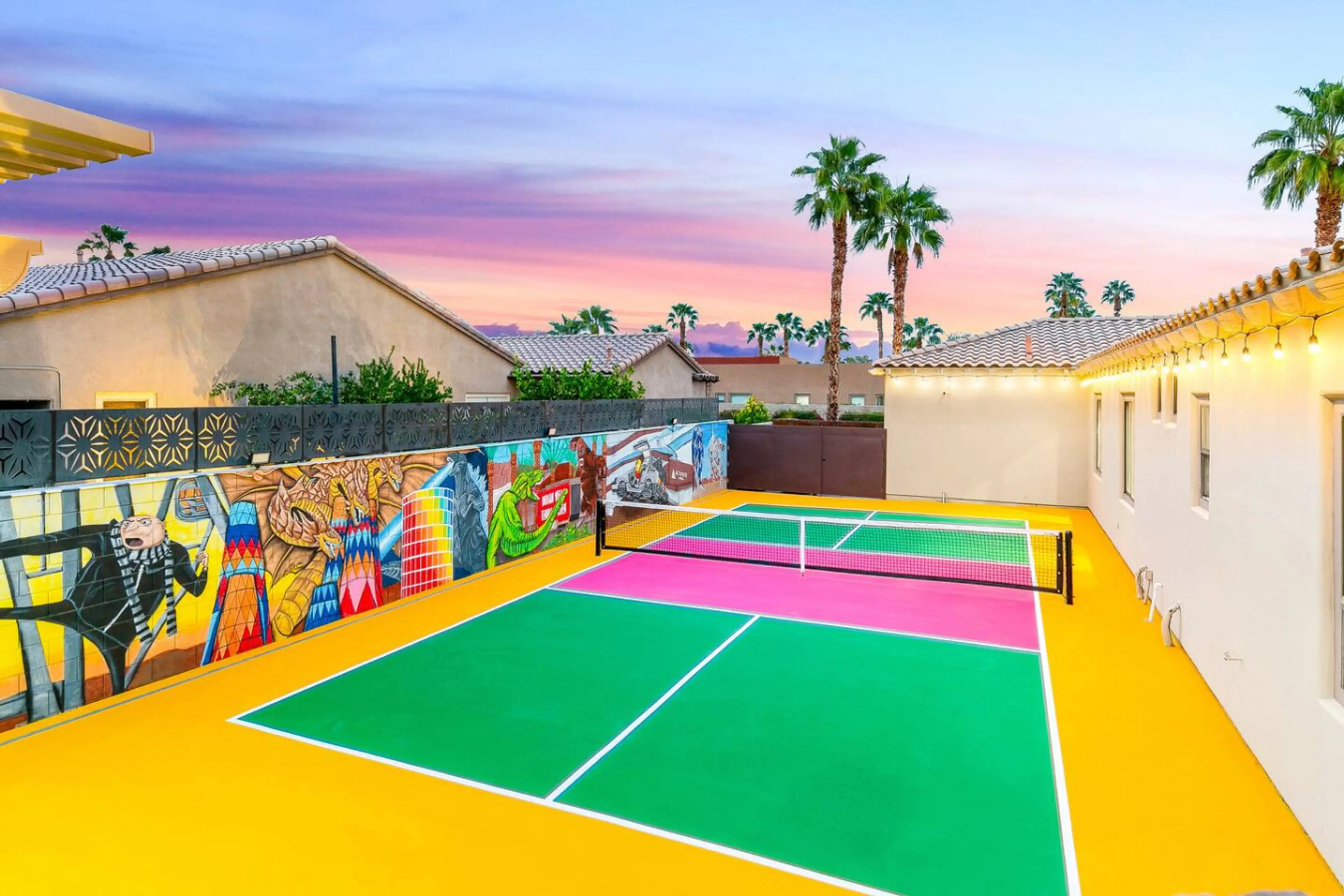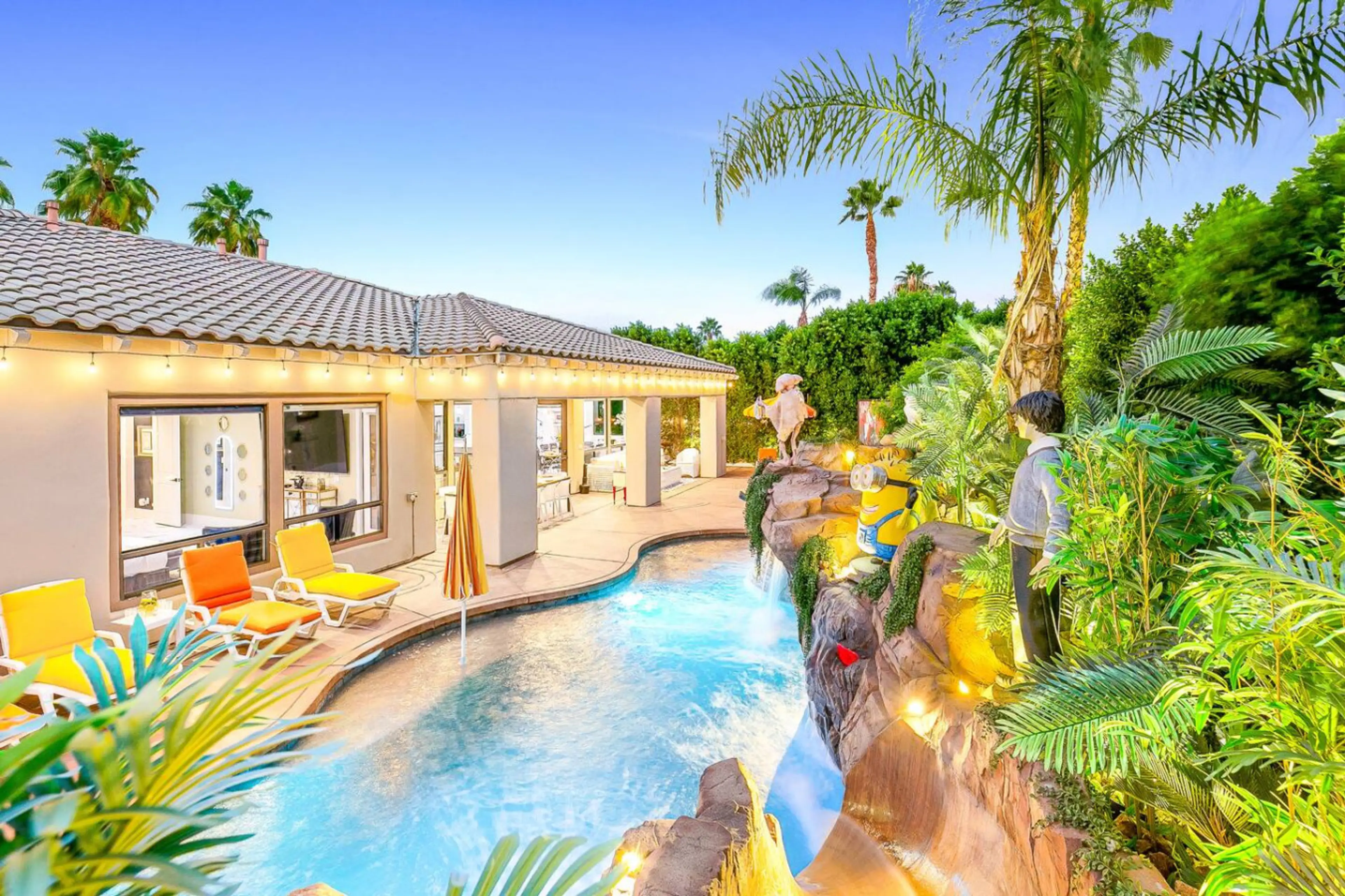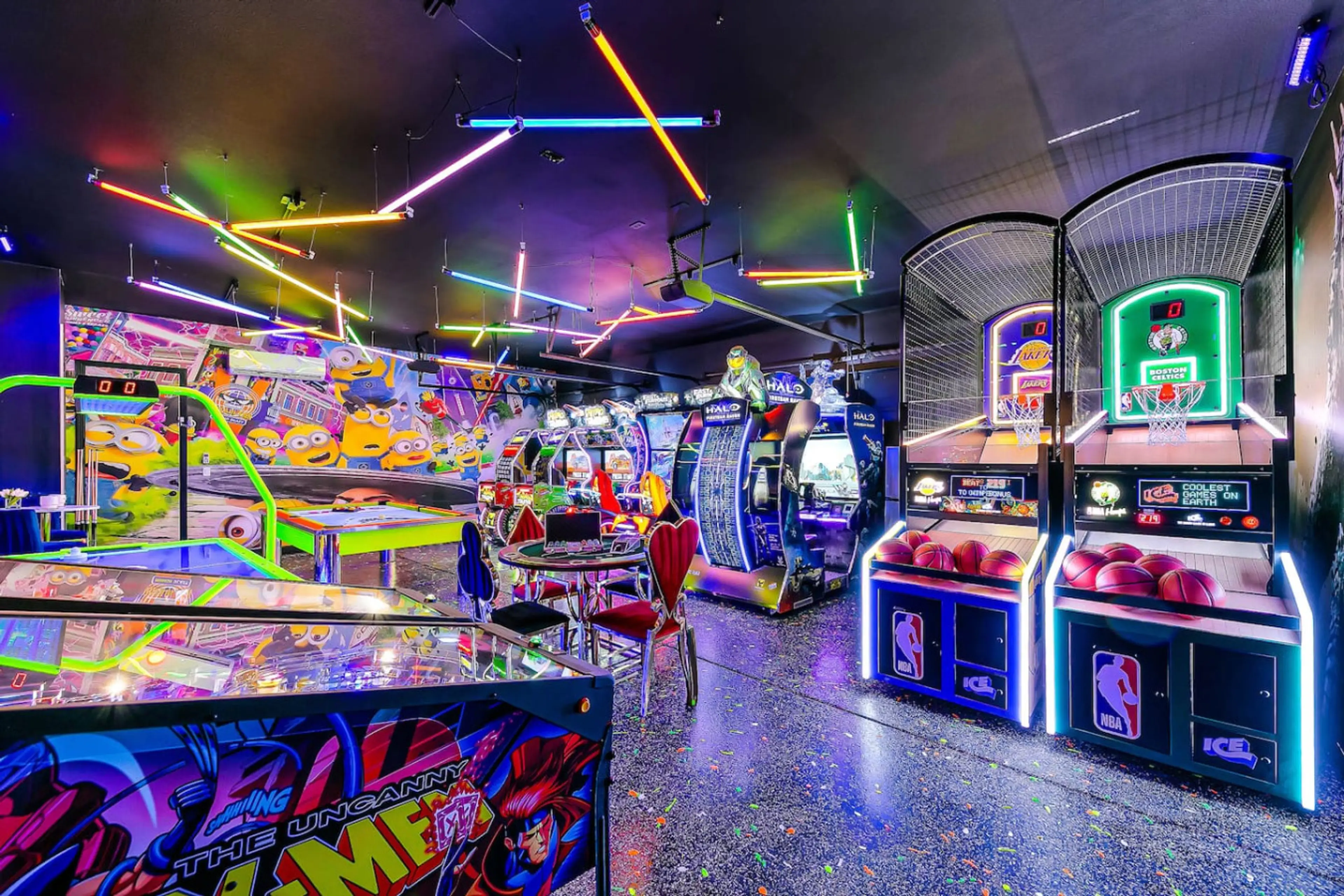 This 7BD/6BA luxury retreat blends resort fun with cinematic flair—featuring a Universal-themed pool with slides and grotto, pro pickleball court, and an arcade-style game lounge. Inside, enjoy a chef’s kitchen, plush living spaces, and smart TVs in every room. → Resort pool w/ slides & spa → Priva...