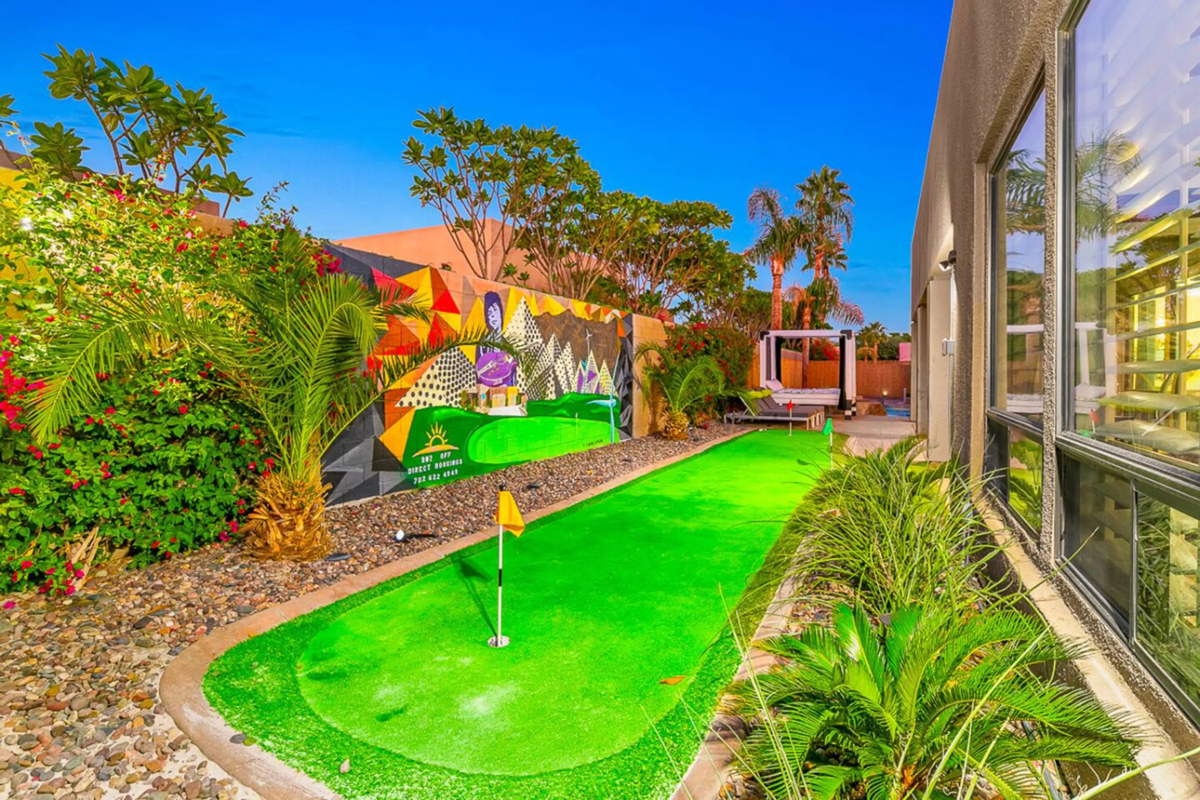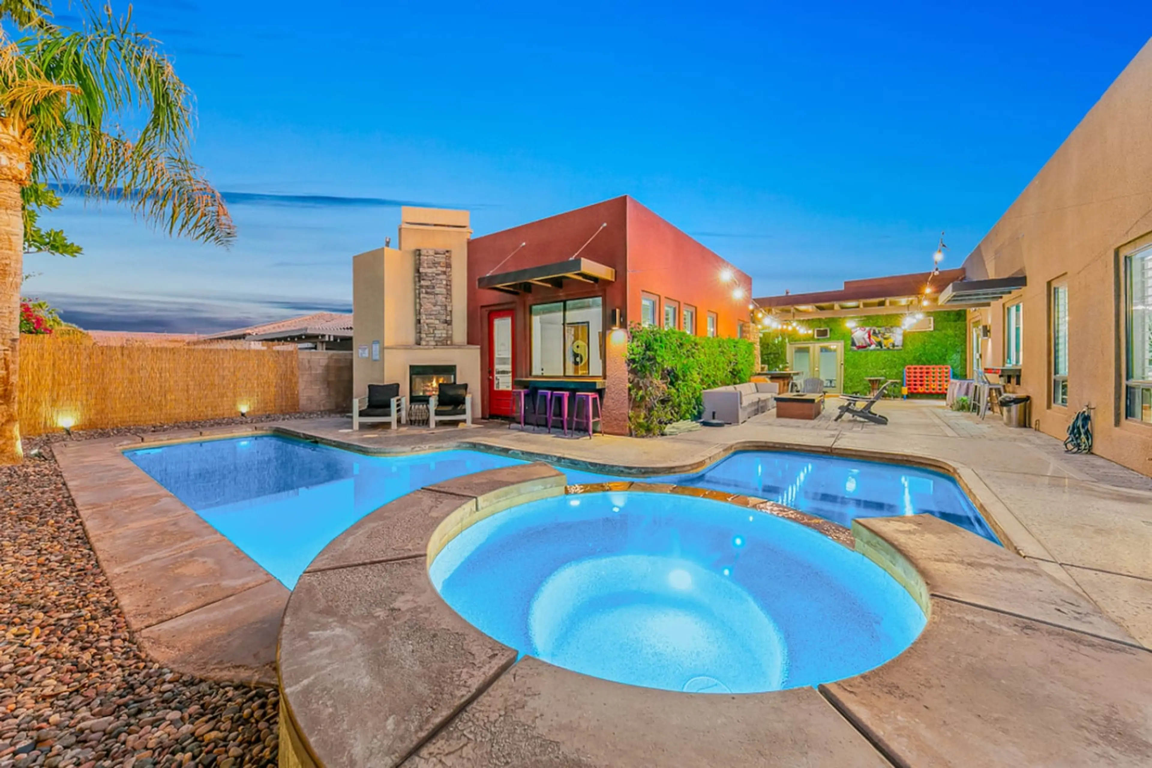Welcome to Backstage Villa – Your Luxury Encore in Indio, a vibrant, music-themed retreat for families, friends & festival-goers -- minutes from Coachella & La Quinta. → Splash in the sparkling pool & jacuzzi under the palms → Play all day with poker, pool, golf sim & arcade games → Relax in 7 luxe...